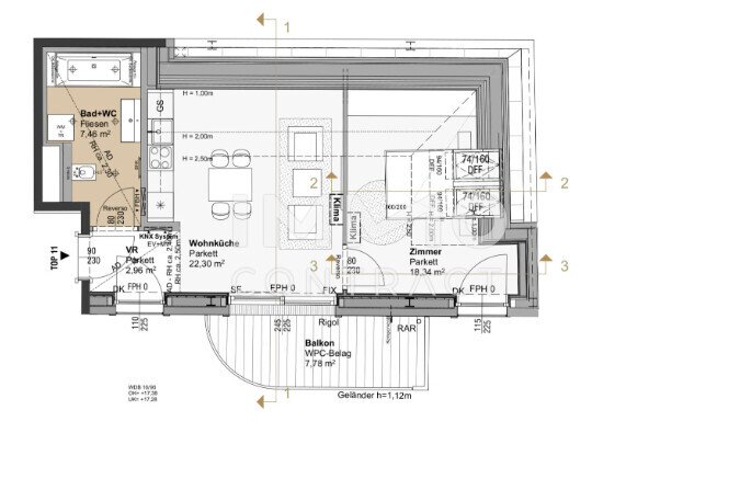 The Quarter 22 steht für stilvolles Wohnen auf höchstem Niveau. Hier treffen zeitgemäßes Design und durchdachte Funktionalität auf erlesene Materialien und eine klare Formensprache. Hochwertiger Fischgrätparkett verleiht den Räumen eine warme, elegante Atmosphäre und sorgt gleichzeitig für ein Gefühl der Ruhe und Entschleunigung. Großzügige Fenster mit klassisch inspirierten Sprossen betonen den noblen Charakter der Fassade und schaffen lichtdurchflutete Innenräume.