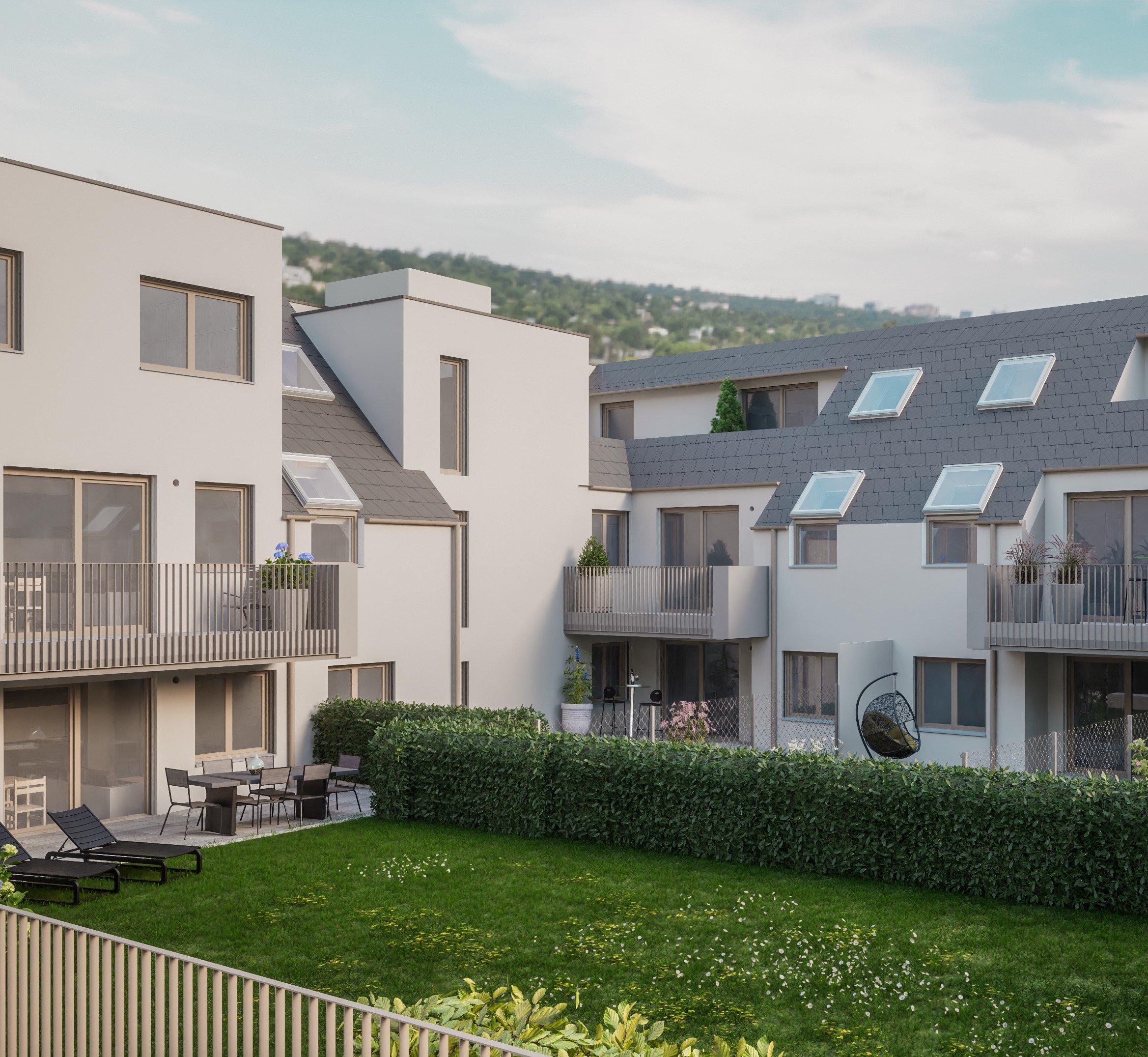 - Sonnige Freiflächen oder Eigengärten mit Rollrasen in allen Wohnungen – grüne Oasen mitten in der Stadt